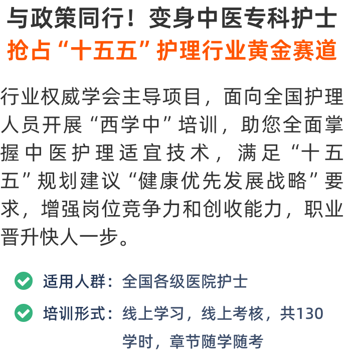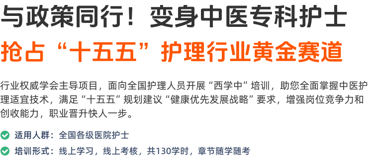 解决综合医院西医护士中医技术薄弱问题,助力医院快速普及开展中医护理适宜技术,协助建设中西医协同旗舰科室、医院。